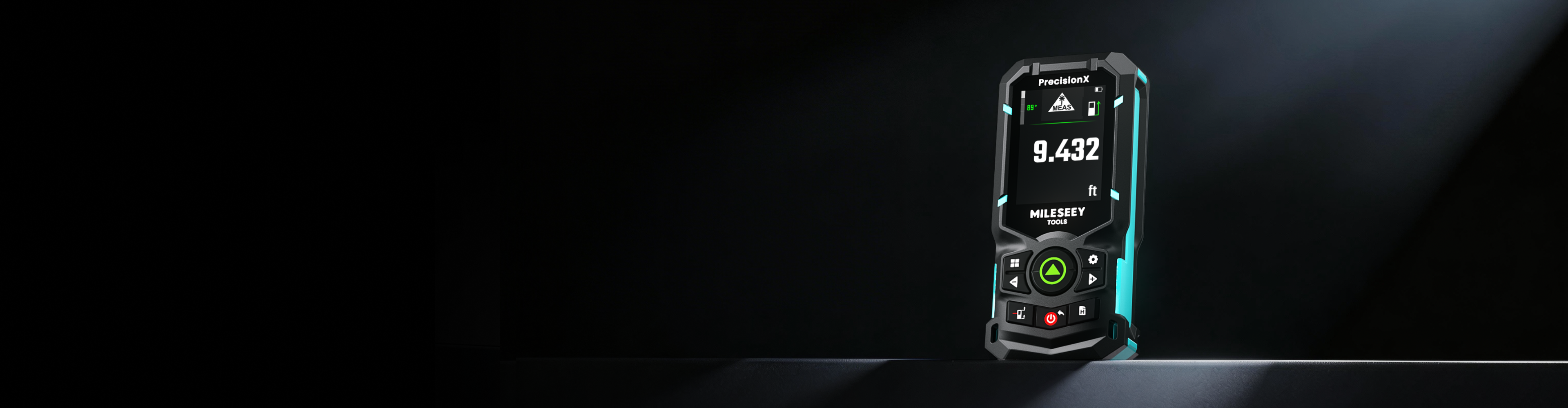 A 4× brighter green-beam laser measure delivering ±1/16" precision indoors and outdoors.
