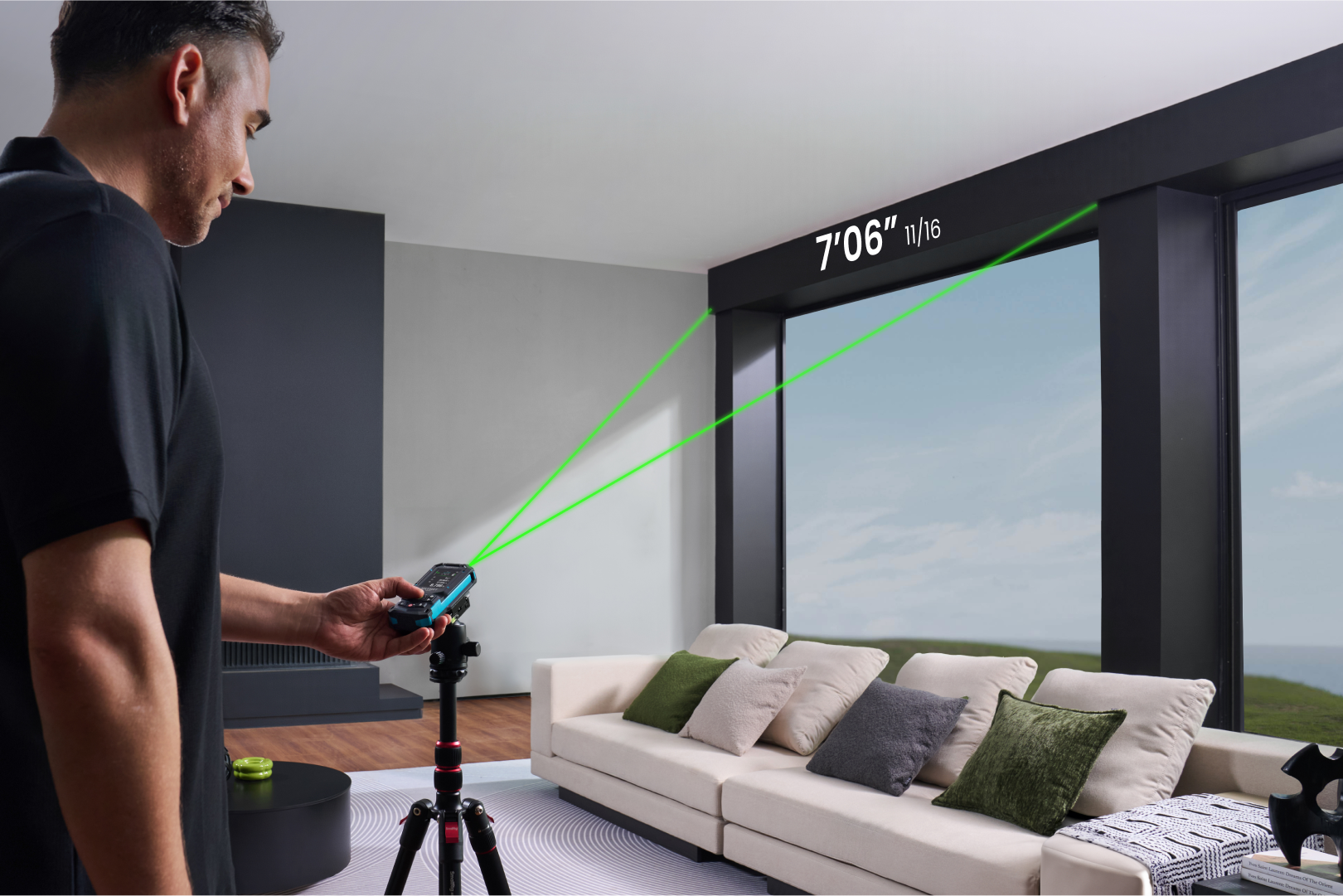 P2P excels in scenarios where direct measurement is difficult, such as sloped roofs, beams, or bay windows in restricted or hazardous areas. For example, you can measure and assess ceiling dimensions from a living room coffee table without needing a ladder.