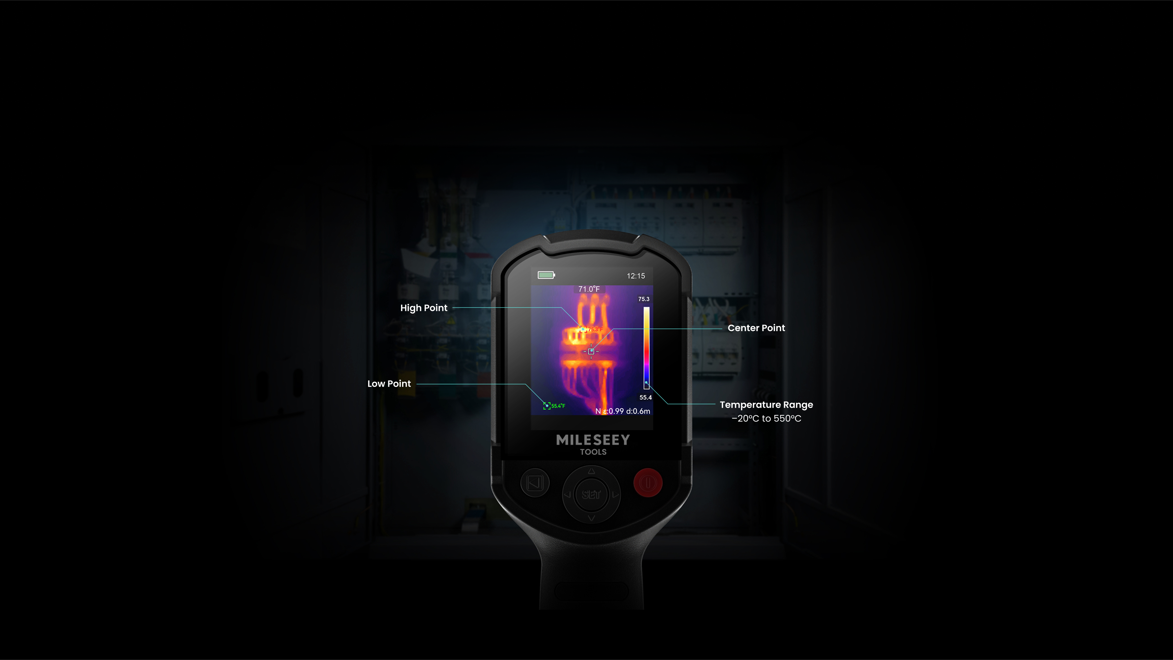 Thermal imagers with dual cameras combine thermal and visible light images in fusion mode, allowing users to pinpoint hotspots with precision in substations, distribution rooms, and more. (Feature available on TR20 Pro only.)